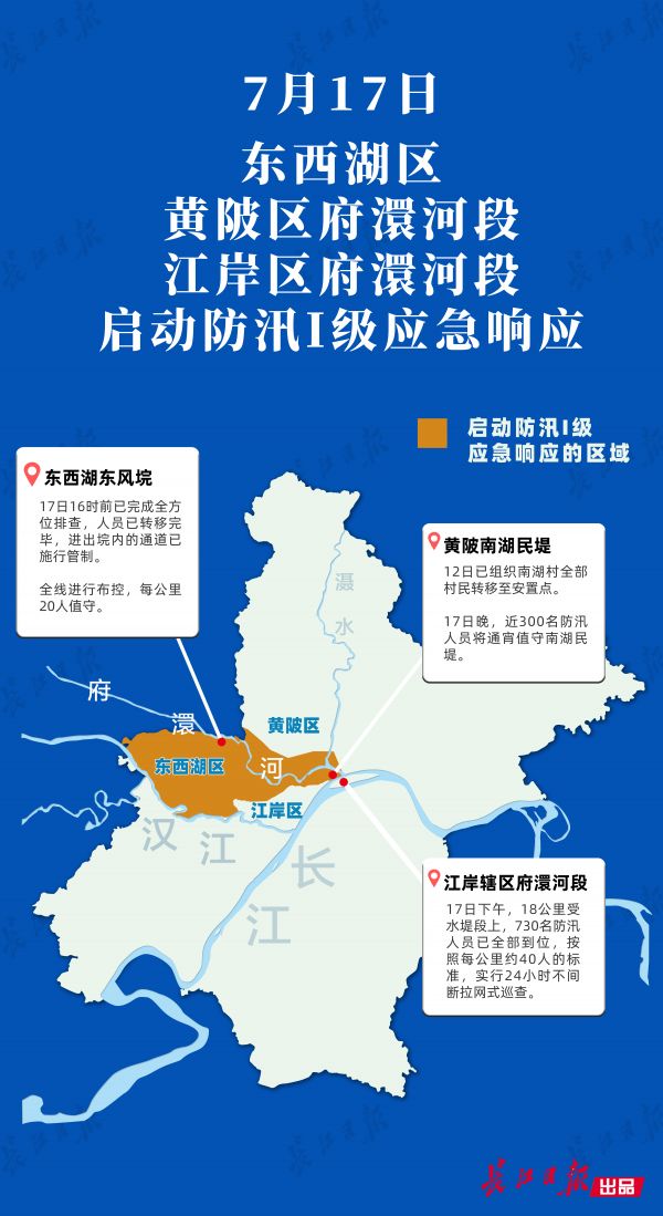 目前,东西湖、江岸、黄陂三个区防汛应急响应等级由Ⅱ级提升至Ⅰ级。