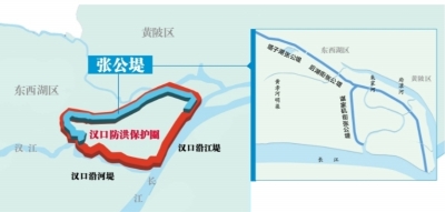 市水务局防御处负责人在新版《武汉市防洪形势图》上画了一个“倒三角”,“这就是汉口防洪保护圈”。地图中,整个汉口地区现正被三道首尾相接的堤防围合保护,这三道堤分别是15.97公里的汉口沿河堤、12.99公里的汉口沿江堤及23.77公里的张公堤。