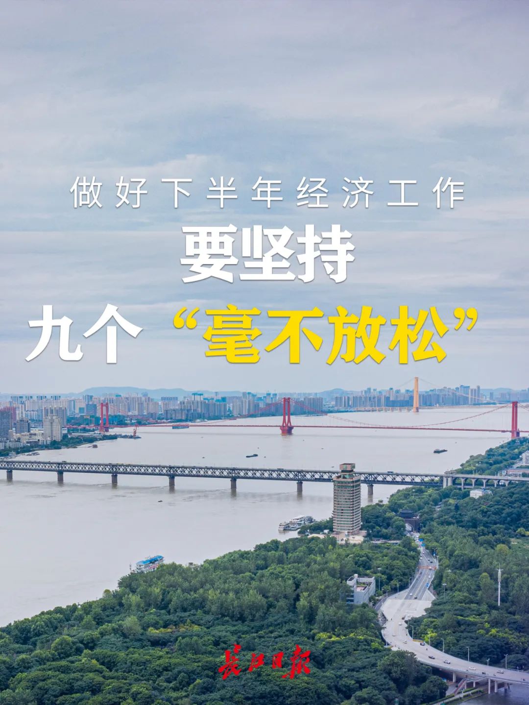 7月18日,武汉召开会议分析上半年经济运行情况,研究部署下半年经济工作。会议要求,坚持九个“毫不放松”做好下半年经济工作。