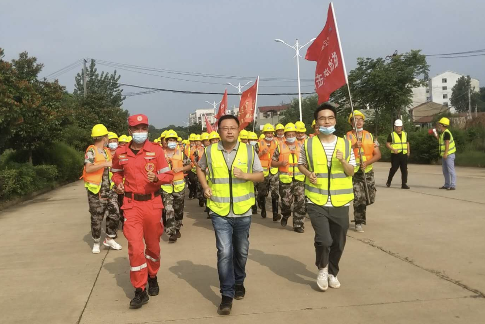 防汛期间,抢险队员每天的日程满满当当:理论学习、实战演练、巡堤查险、勘察路线、紧急拉动,等等,任务一拨接着一拨,甚至夜间也要开展紧急集结行动。在分队负责人陈鹏和安能专家阮明的支持下,只要不下雨,皮伟就见缝插针的组织分队192名队员开展体能训练。