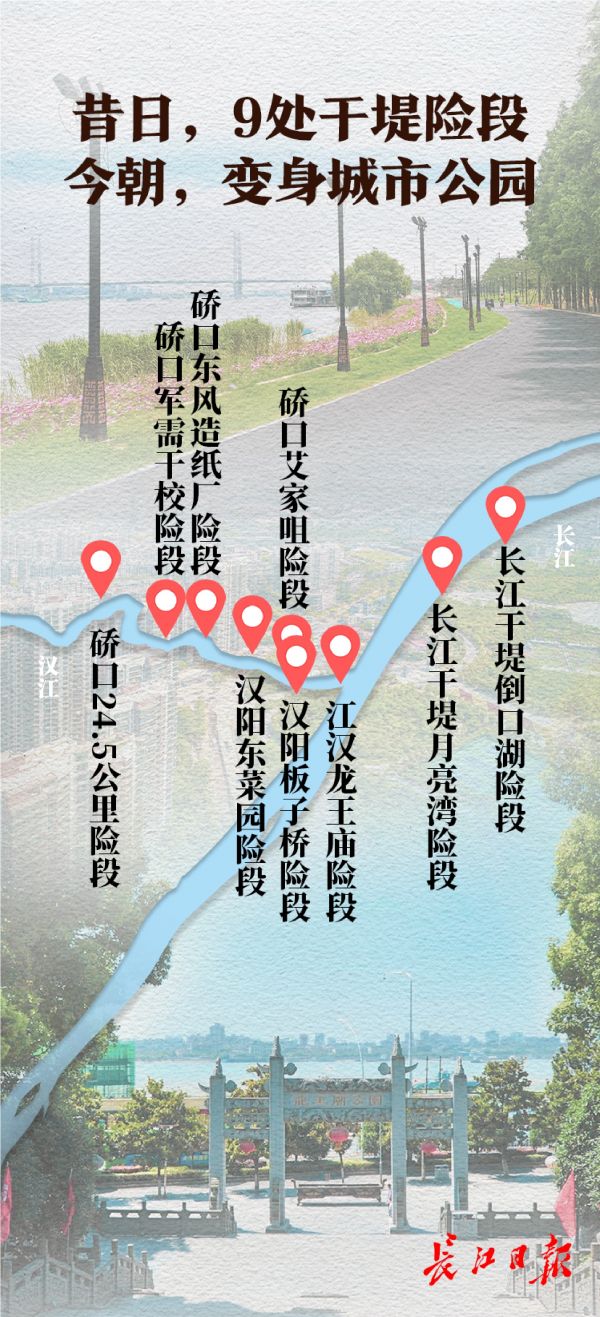 今年汛期,武汉市两江干堤24个险段未发生较大险情,包括龙王庙在内的9处险段已变身城市公园。