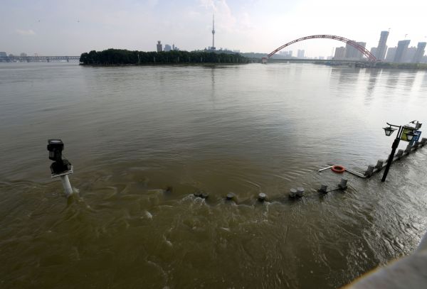 长江日报-长江网7月28日讯 7月28日,长江持续超警戒高水位运行。28.50米,28日18时,武汉关水位比前一天上涨0.13米,超警戒水位1.20米。汉口龙王庙亲水平台部分护栏没顶。记者刘斌摄影报道