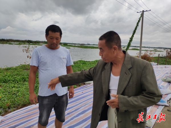 考虑到曾祥勇年事已高,村里请他当技术指导,不用守在大堤上,但他闲不住,老往堤上跑。新河村负责南大堤的一段老堤,堤坡没有硬化,斧头湖水位上涨后要铺彩条布防浪护堤。7月8日,曾祥勇到堤上看村民铺彩条布时连连摇头。