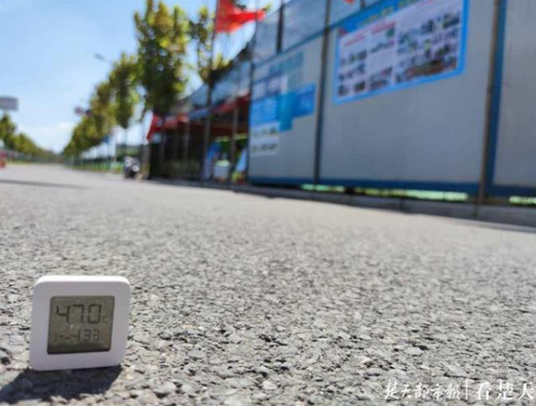 江北快速路第一责任堤段4号值守点外的地面温度已经达到47℃