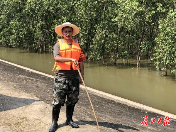 长江网8月5日讯 5日上午,武金堤上烈日当空、热浪扑面。在洪山区卓刀泉街值守堤段,5名队员手握竹竿、脚踩长靴一字排开,冒着高温巡堤查险,草帽下是一张张早已晒得黝黑的脸。他们当中,有一位大眼睛、高鼻梁、体格壮硕的新疆小伙卡地江·买买提。报送数据、检修设备、巡查抢险……驻守大堤20余天,26岁的卡卡是队员口中的“多面手”。