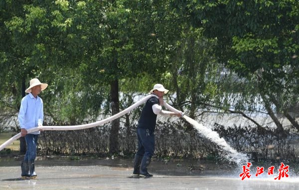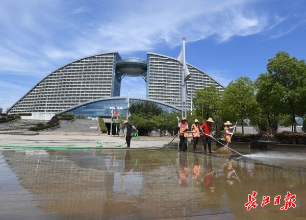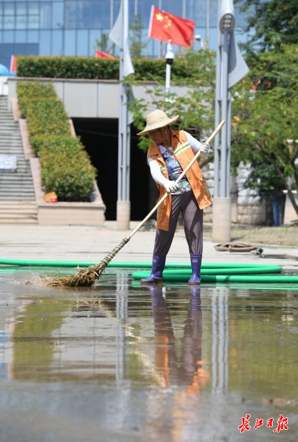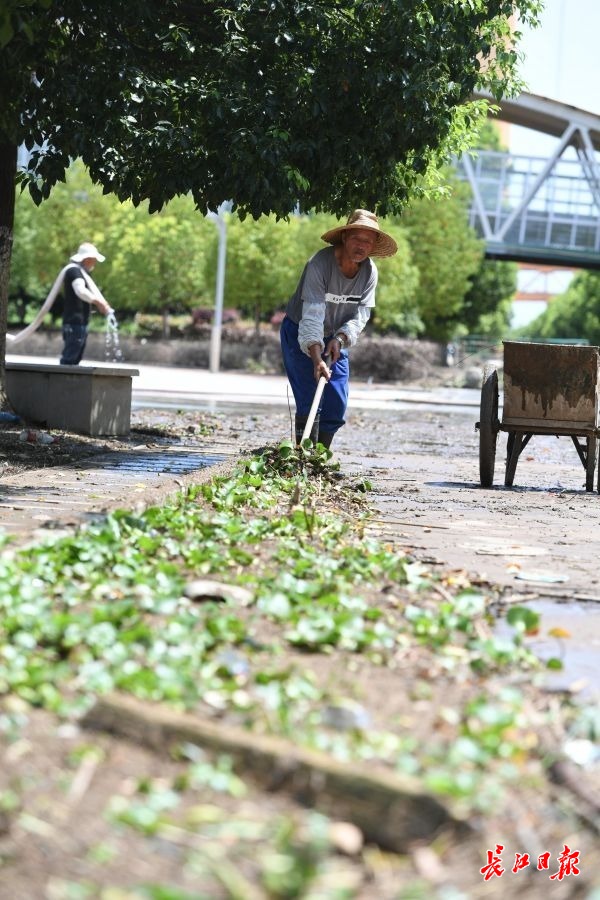 长江网8月6日讯 8月6日,汉阳国博江滩滩地及亲水平台已大面积露出水面,工人们正忙碌着清理地面淤泥及垃圾。据了解,长江武汉段水位正持续缓退,武汉市防汛应急响应等级也从Ⅱ级下调至Ⅲ级。长江水文网显示,汉口水文站6日12时水位27.40米,长江武汉段水位有望很快退至27.30米的警戒水位线。(记者李子云摄影报道)