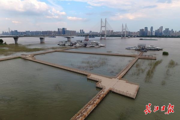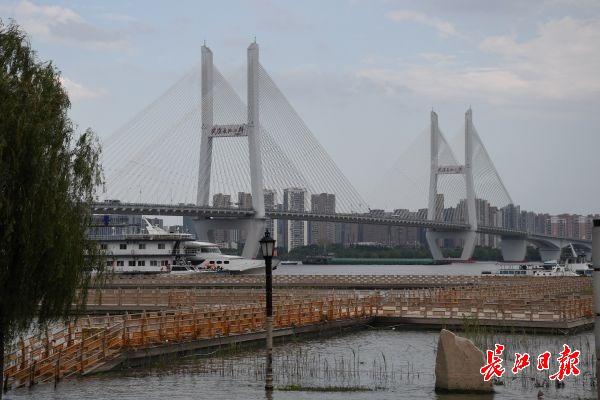 长江日报-长江网8月17日讯 8月17日,长江日报-长江网记者在汉口江滩看到,因为长江涨水而被淹没的观芦栈桥已经显露出来,橘红色的桥身因为江水浸泡裹上一层泥沙变成了黄灰色,目前汉口江滩已经全面开放,等长江水位进一步回落,观芦栈桥也将清洗后对游客开放。(记者詹松 摄影报道)