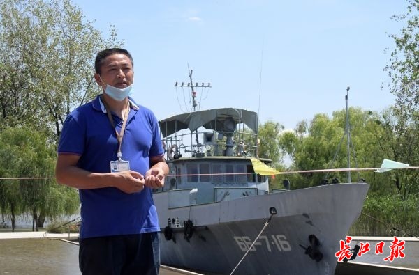 今年汛期,上涨的江水漫过汉口江滩亲水平台。水涨船高,716艇也浮在了水面。“716艇原本有绳索固定,但浮力太大,如不采取措施,舰艇很可能挣断绳索。”周天林记得,从第一天发现船身出现明显上浮,他就开始睡不好觉。