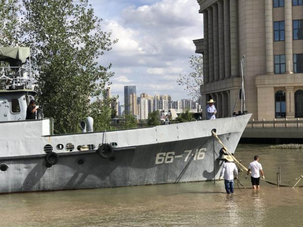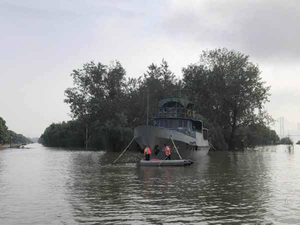 “716艇是珍贵文物,不容有失”,凭借在武警船艇大队服役多年的经验,周天林在和同事商量决定给艇“松绑”。7月6日下午,周天林叫上几个男同事一起蹚水上艇,依次将固定716艇的四根缆绳放松。