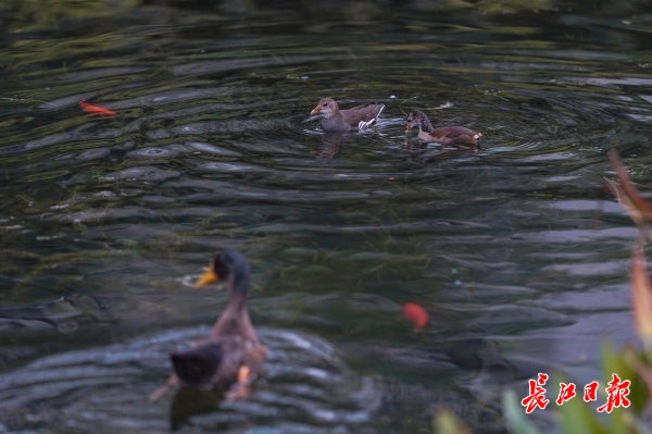 长江日报-长江网9月15日讯 15日,记者路过西北湖看到,这里水道清澈。水下植物群,鱼儿穿梭自如,水上荷花点缀其间。家鸭和野生黑水鸡一同游弋在湖面上觅食。(记者彭年 摄影报道)