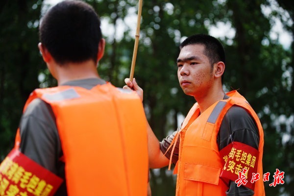 今年18岁的武汉市第十五中学的高三毕业生周亮宇,高考结束第二天就奔赴武金堤值守点报到。高考前3日,他就向社区“预约”了上堤。他主动向老队员们“取经”,在泥泞湿滑的堤段上,仔细查看有无管涌、散浸等隐患。