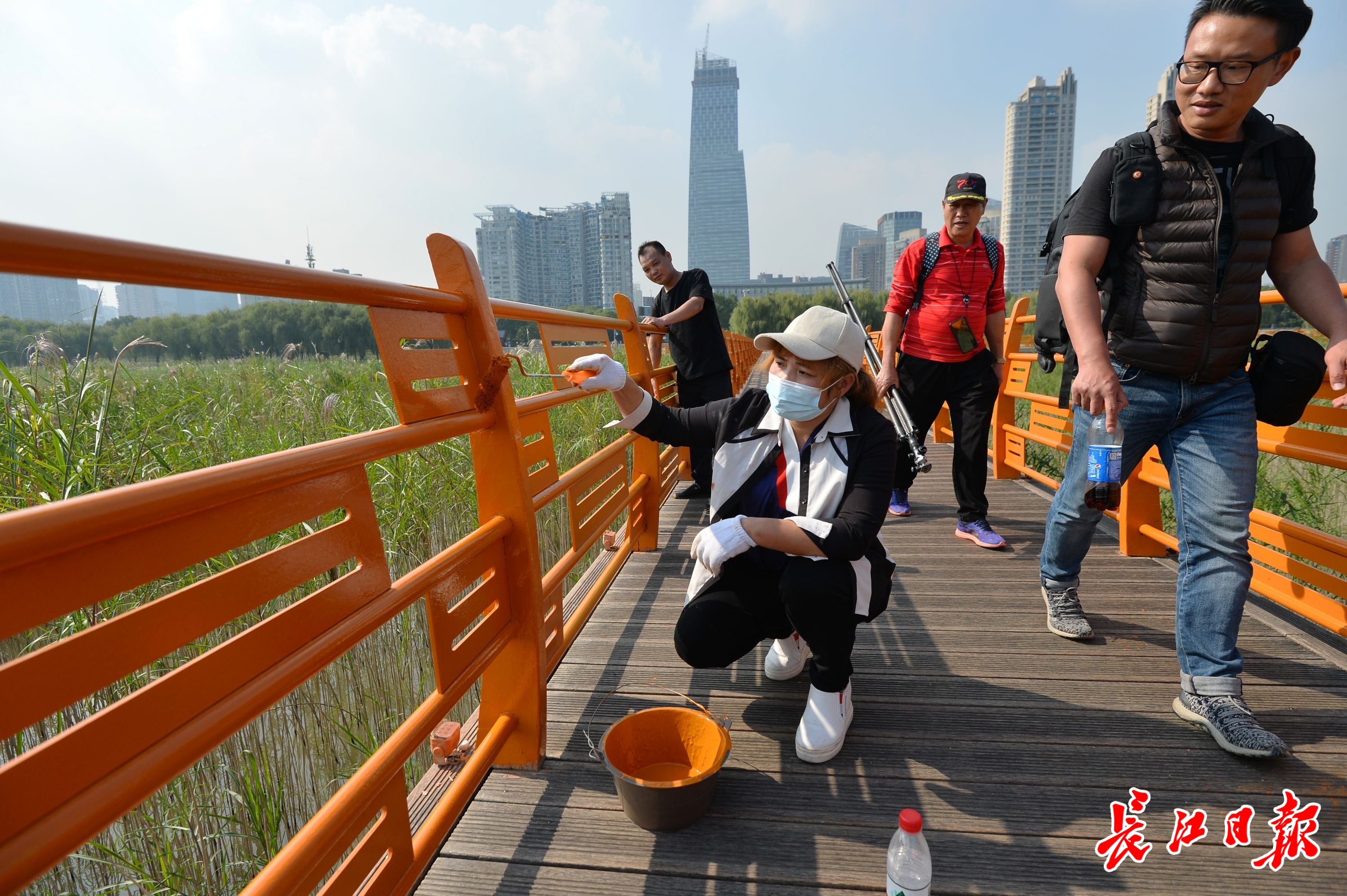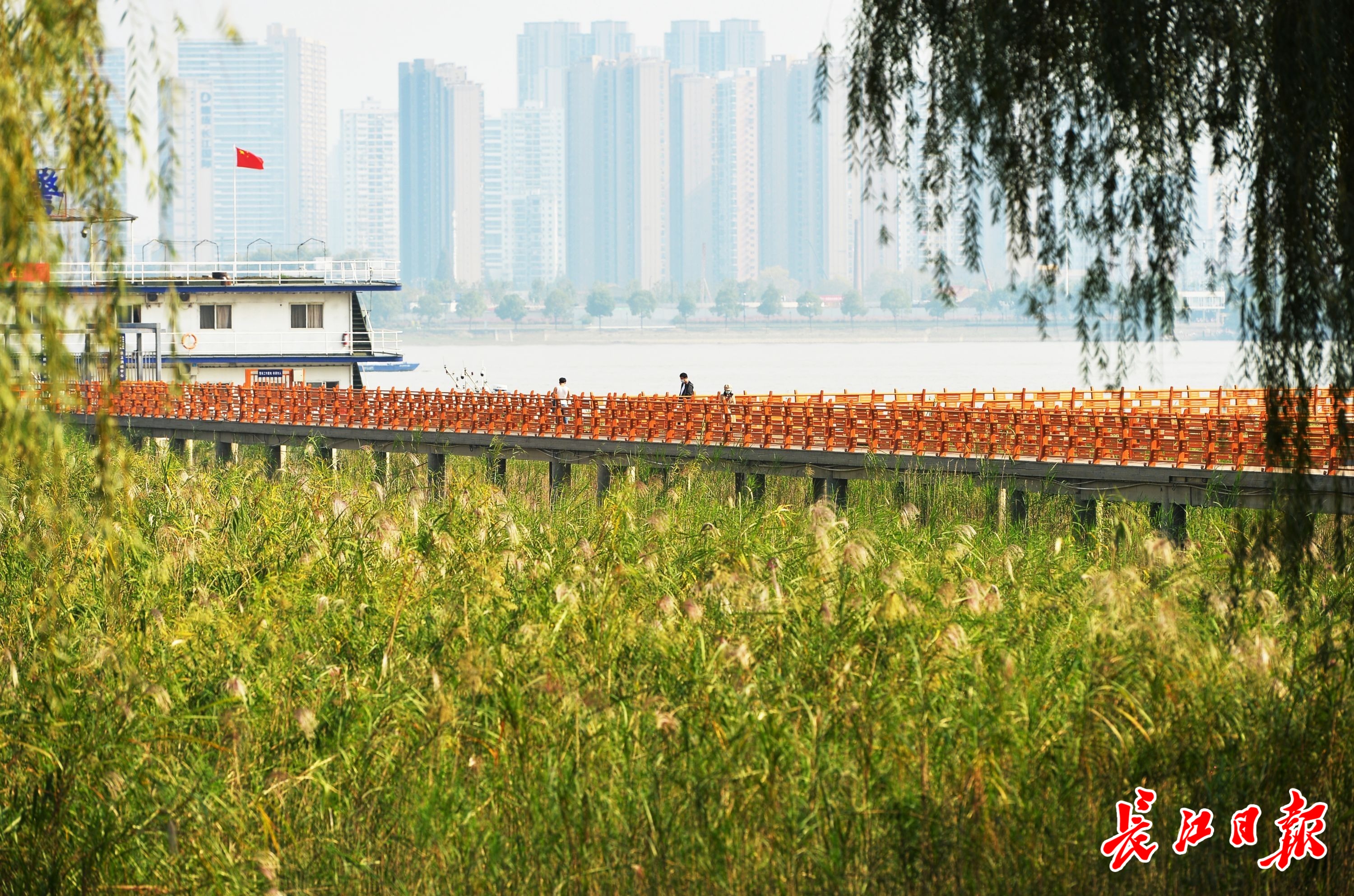 长江日报-长江网10月10日讯 10月10日,在汉口江滩观芦栈桥,工作人员正在涂刷油漆,翻新曾经被江水淹没过的栈桥护栏。受长江水位影响,江滩的芦荻滩绝大部分仍浸泡在江水里,导致大部分芦荻的花期有所推迟。难得的是,部分地势稍高,提前脱离水困的芦荻已经开始吐穗,让人不得不感叹它们顽强的生命力。(记者喻志勇 摄影报道)