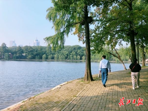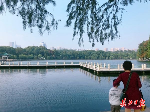 游客在东湖边赏湖,享受秋日时光。 记者李文婕 摄