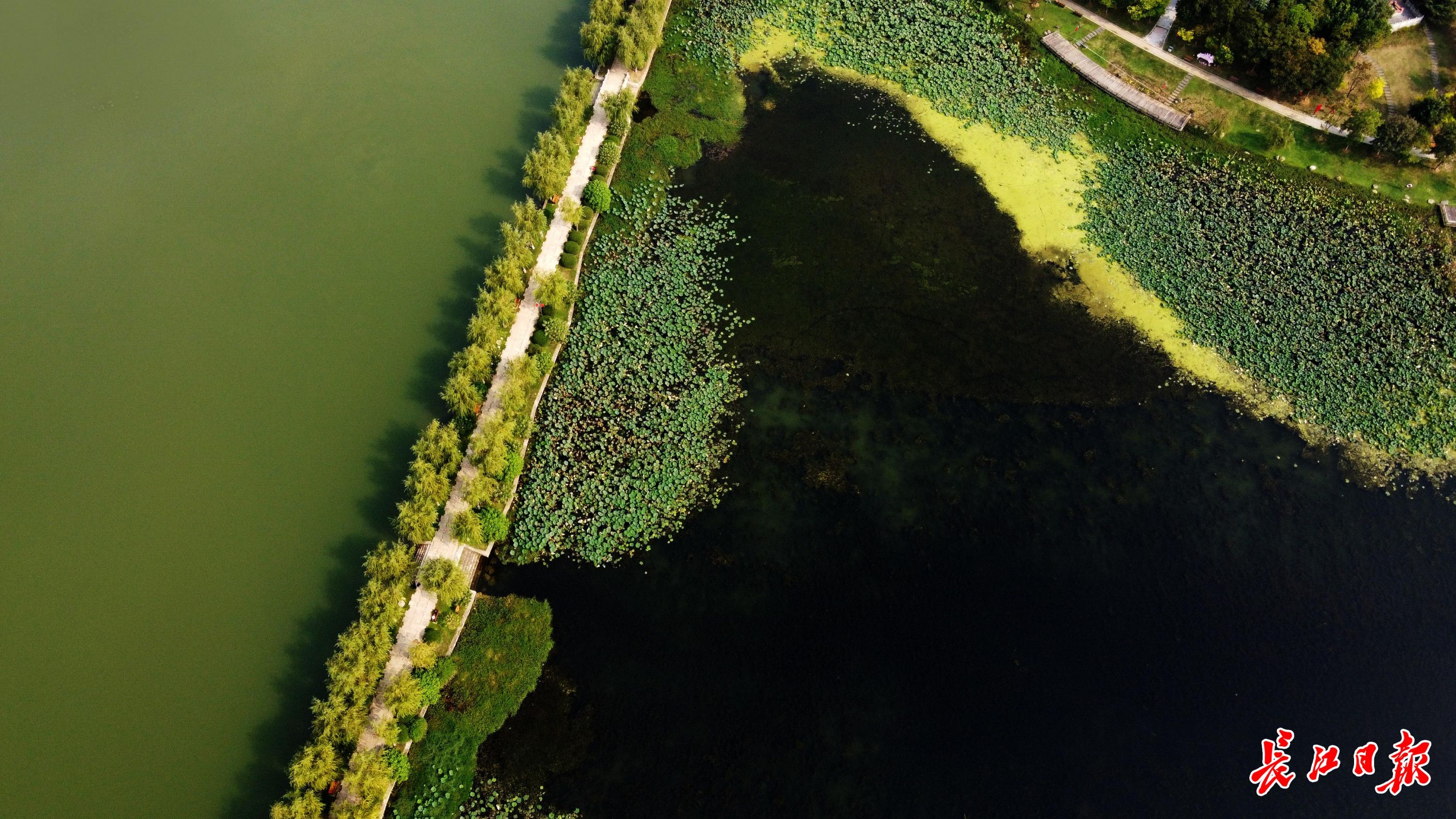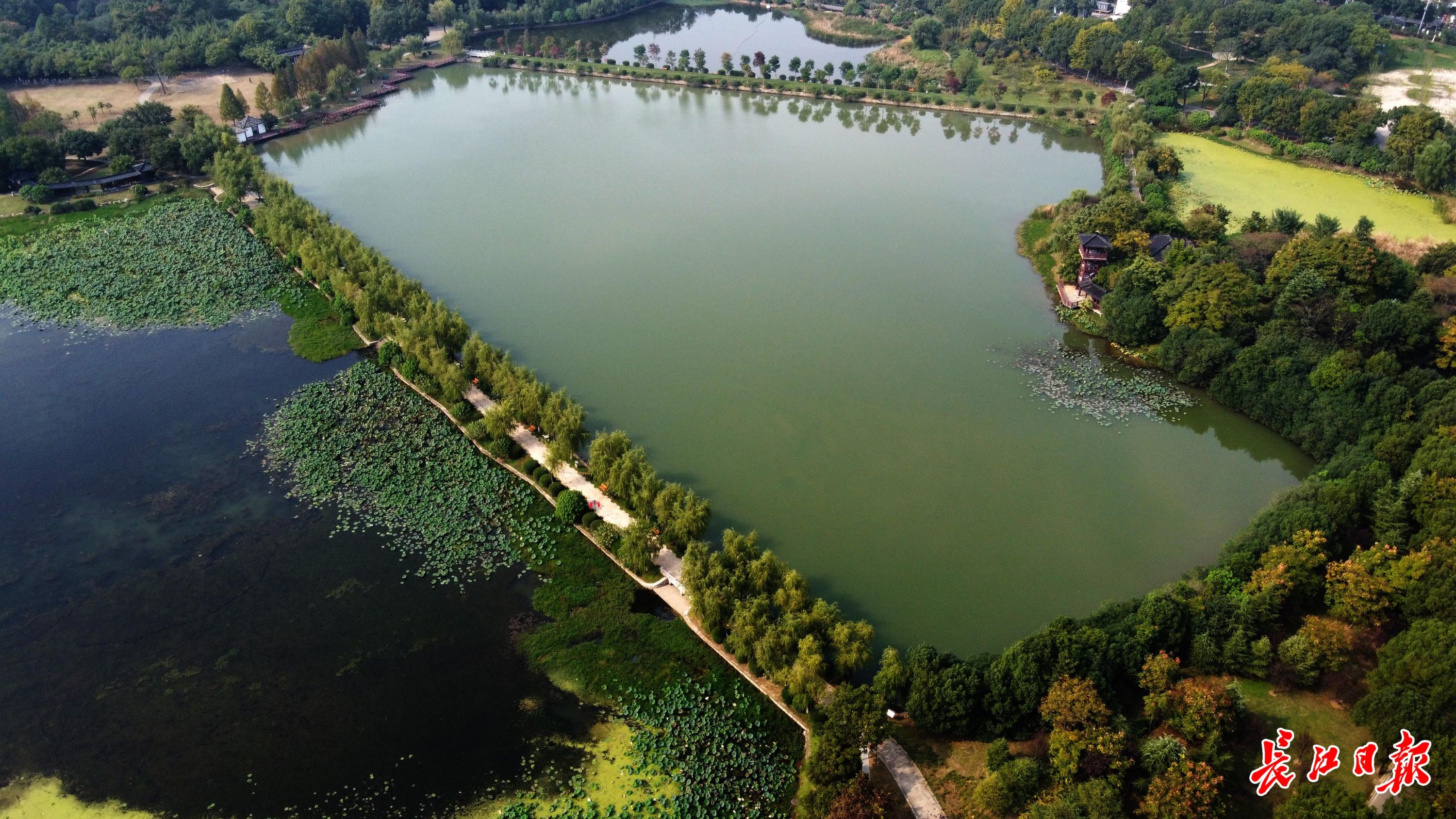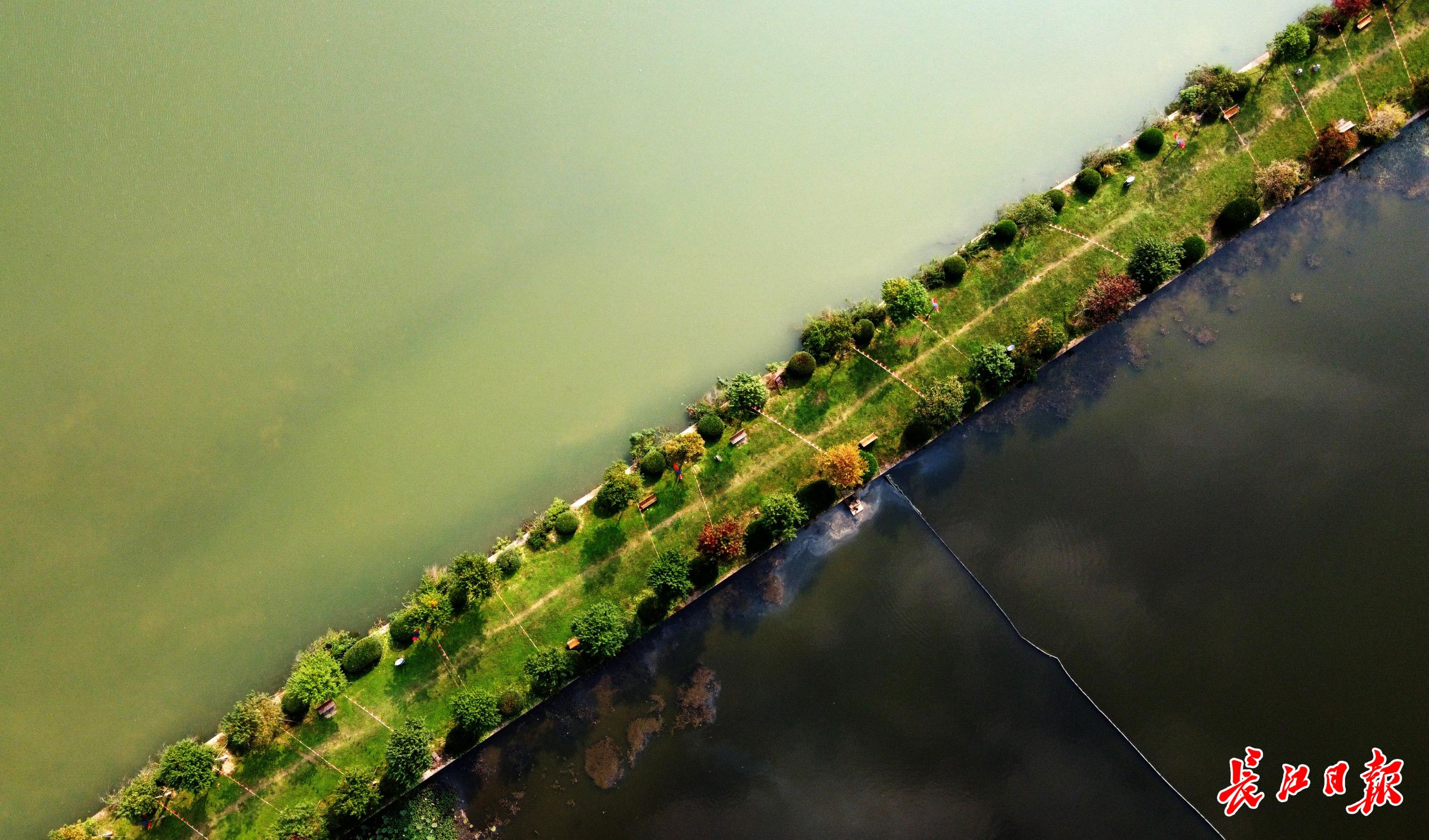 长江日报-长江网10月13日讯 10月13日,武汉天气持续晴好。沌口汤湖湖畔树木青黄交接,湖水碧绿,美丽的秋色在阳光下显得更加耀眼。(记者李子云 摄影报道)