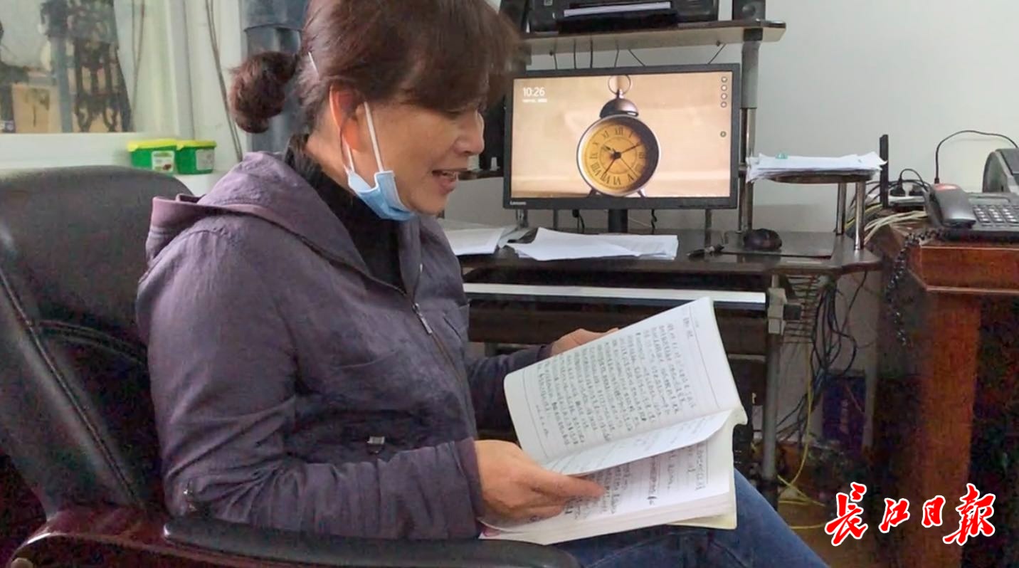 甘红萍翻出她厚厚的记录本。记者王怡人 摄