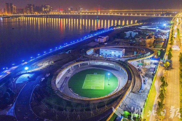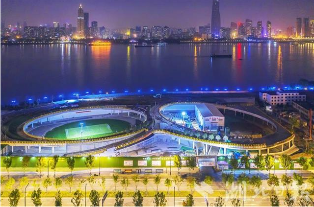 10月25日晚,武汉市武昌月亮湾城市阳台工程(一期)项目工地灯火通明,一座雏形初显的滨江城市阳台在江城夜色中呼之欲出。据了解,月亮湾城市阳台工程位于武昌滨江商务区核心段,长江岸线长约1100米,工程占地面积约194亩,分两期进行建设。一期为景观绿化及阳台工程,2019年初开工。二期整体策划拟定位为武汉长江生态文化长廊综合展示中心。建成后将成为市民观江赏景休闲的大型亲水公共活动空间。(湖北日报全媒记者梅涛 摄)