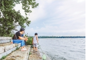 东湖健康水生态吸引游客驻足。 陈晨 摄