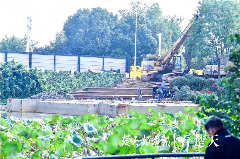 昨日记者看到的施工现场就是将岸线的植物进行清杂清表。“目前进度是对湖泊进行清淤,清淤总计约7万立方米。”施工方负责人说。