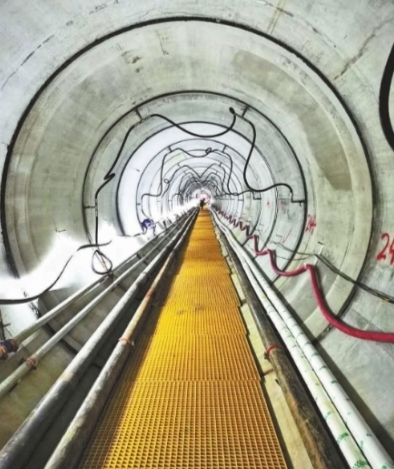 “圆形管道外直径为4.14米,内径3.5米,2条污水压力管安装在管道内,就像在一个房间内,以后维保人员可以进去维保。”鲍军舰说。