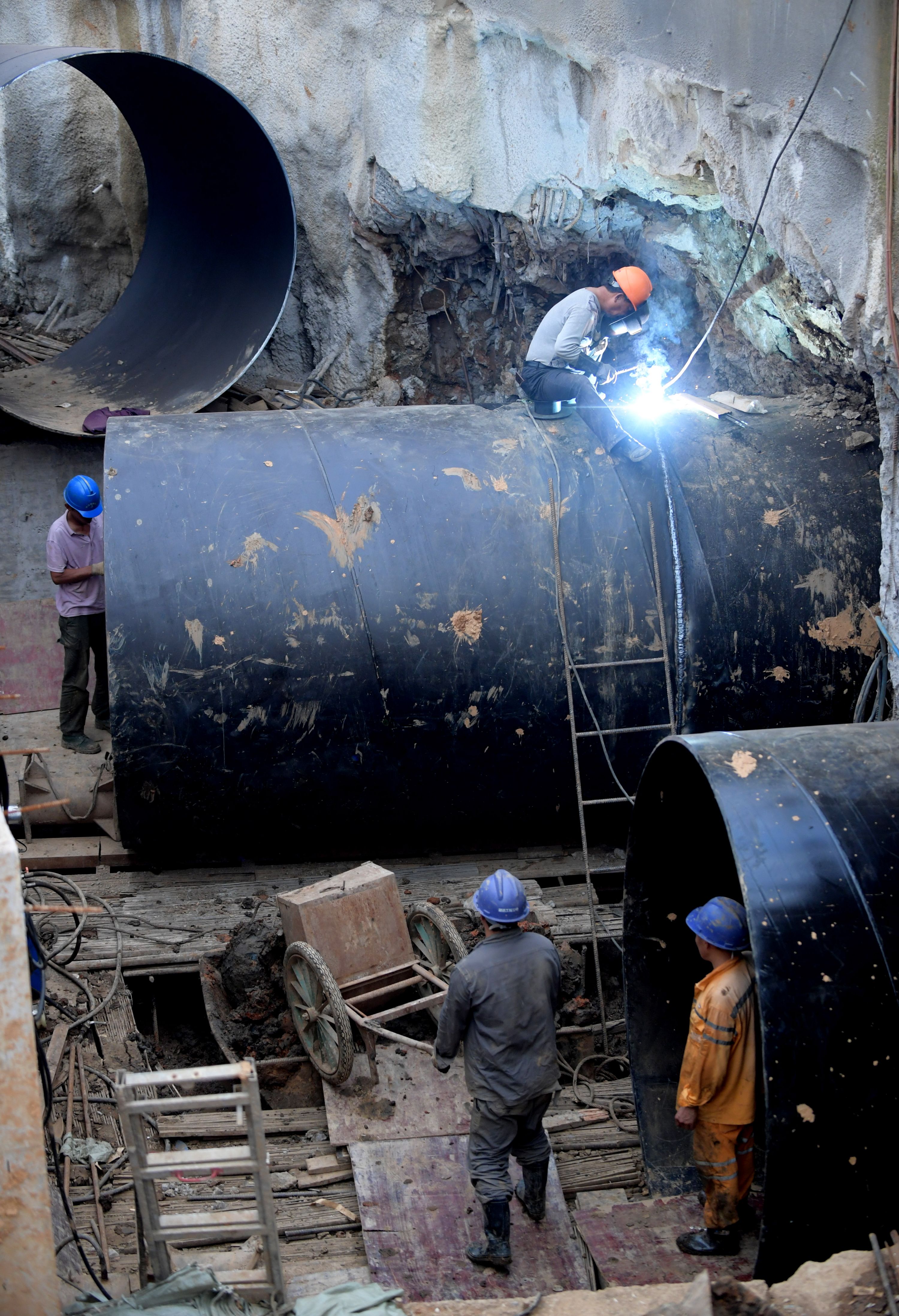 东线排口正在合拢,此为中南民族大学排口处现场。(记者刘斌摄)