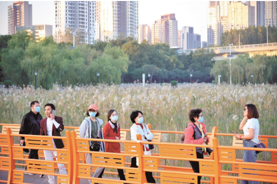 11月12日,秋日暖暖,在武汉汉口江滩二桥下,芦荻已开始绽放,不少游客趁着好天气前来游玩。据了解,2020中国武汉地书大赛决赛暨芦花节将在本周末开幕。
