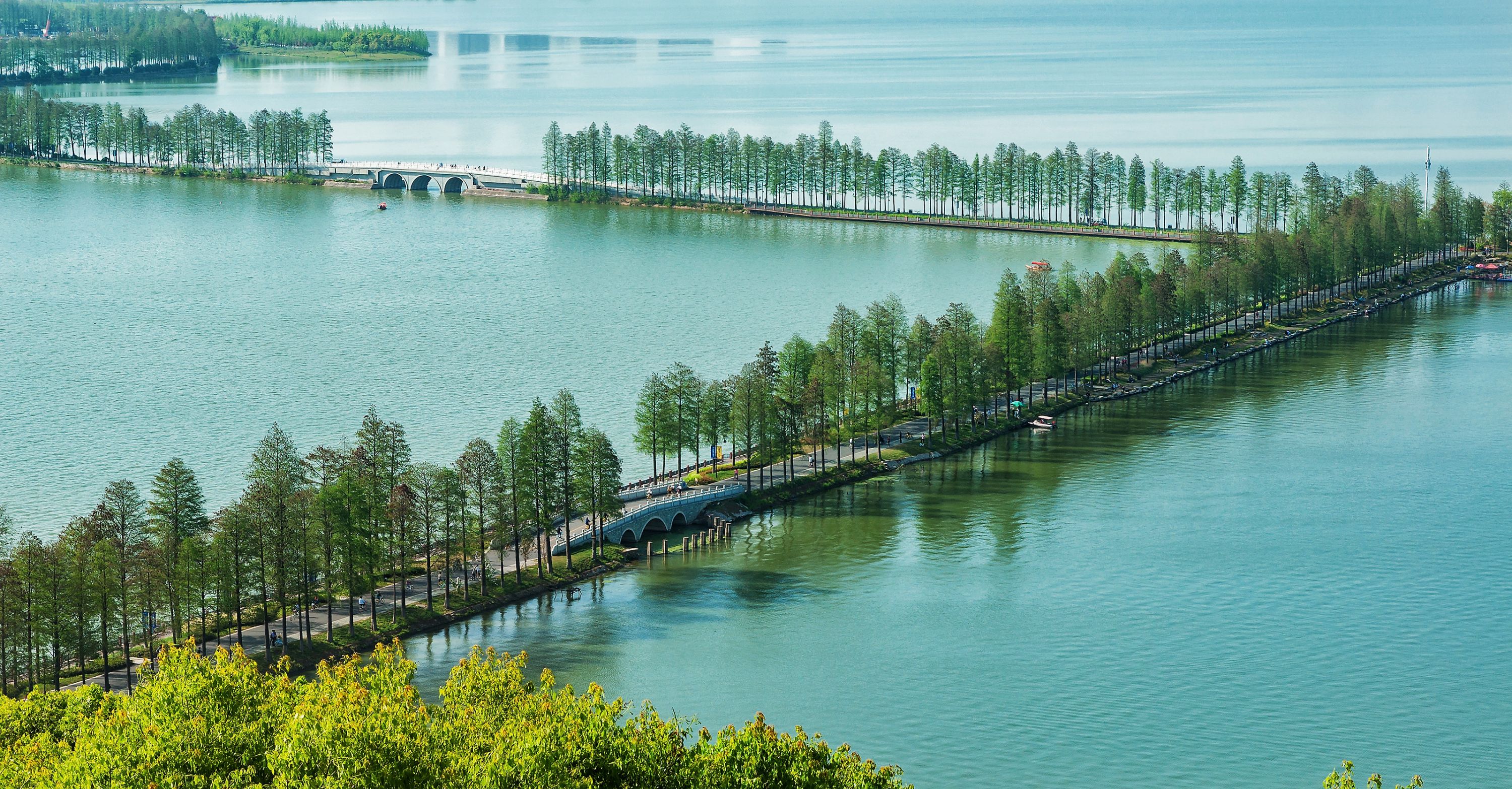 百公里生态绿廊环绕最美城中湖。罗斌 摄