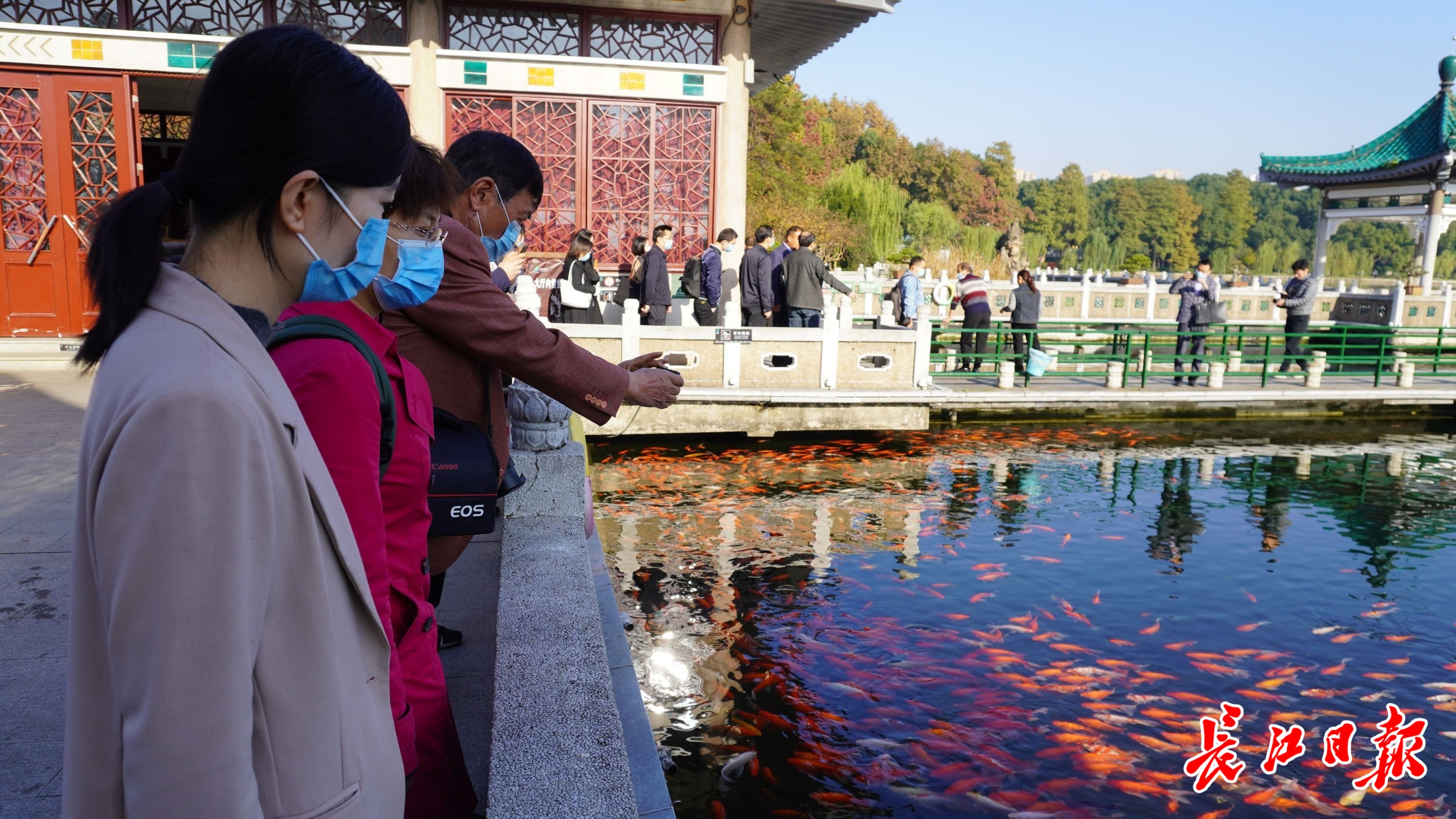11月12日上午,验收组一行来到东湖听涛景区碧潭观鱼内塘,碧波荡漾下,水草丰茂摇曳,鱼儿悠游穿行。今秋以来,东湖“水下森林”刷屏,吸引市民游客频频“打卡”。