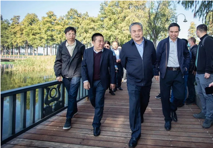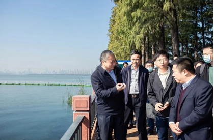 11月14日上午,武汉市副市长张文彤来到武汉生态环境投资发展集团东湖水环境提升工程鹅咀水生态示范区,调研东湖水生态修复的建设情况。武汉生态环境投资发展集团党委书记、董事长胡承启,党委副书记、总经理、副董事长吕善功参加调研。