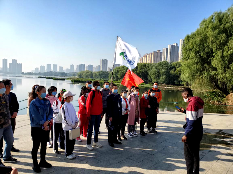 同时,志愿者们也向公园游客发放环境保护宣传册,在墨水湖边捡拾垃圾,希望以自己的行动去影响更多人。