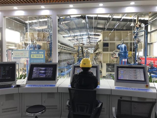 走进脱水站淤泥脱水加工区,入口处便是监控指挥中心,大屏幕上显示着各个脱水站每一道工序的运行情况,一位操作人员坐在监控台前,便可对全站了如指掌,及时进行反馈和调整。通过疏浚远程监控平台,还可以掌握湖中清淤船的运行情况及清淤的精度,随时了解全面的信息。