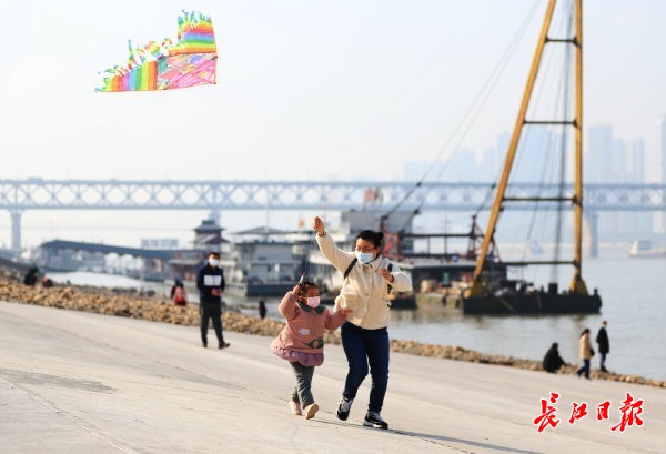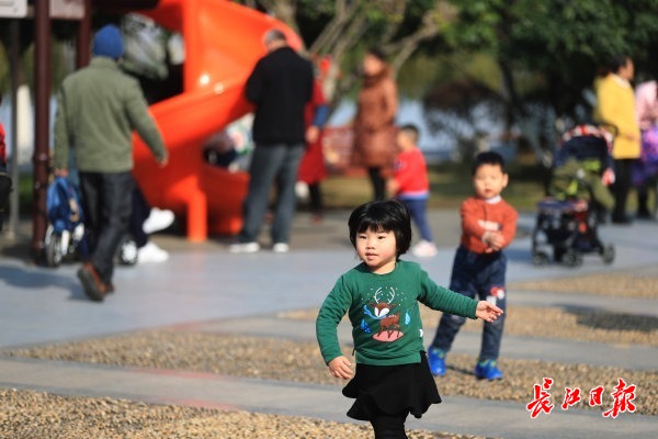 长江日报-长江网12月5日讯 5日天气晴好,市民们纷纷走出家门漫步武昌江滩,孩子们奔跑嬉戏,大家都尽情享受着冬日暖阳。