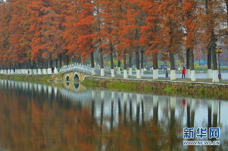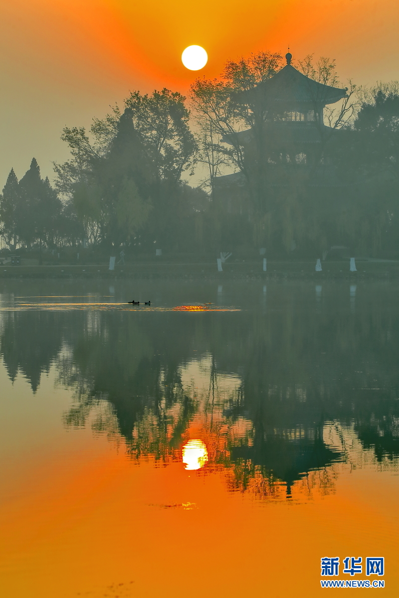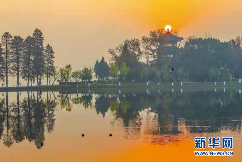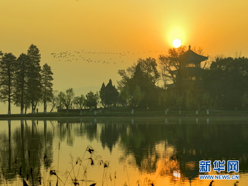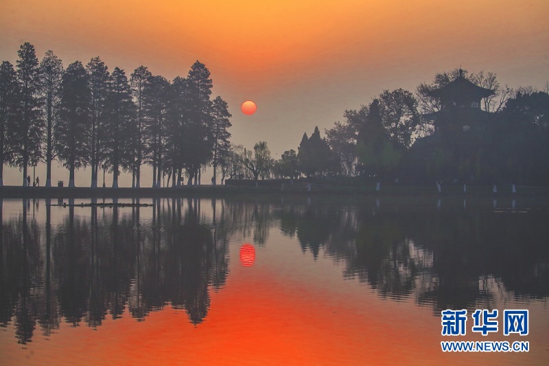 图为武汉东湖行吟阁日出。新华网发 裴大新摄 近日,湖北武汉天气以晴为主。武汉东湖风景区里,碧树红叶,楼宇亭台,相映生辉;寒鸭戏水,小鸟群飞,游人信步,生态自然。在日出日落映照下,呈现一派迷人的冬日美景。 图为清晨在东湖散步的行人和湖面悠游的野鸭。新华网发 裴大新摄 图为东湖百花苑夕照。新华网发 裴大新摄 图为日落时分,东湖湖面、残荷、小舟与远处的楼宇相映成趣。新华网发 裴大新摄 图为日出东方,东湖寒鸭戏水。新华网发 裴大新摄 图为老年游客在园林中漫步。新华网发 裴大新摄 图为东湖湖面鸟群。新华网发 裴大新摄 图为日出东方东湖湖面红光普照。新华网发 裴大新摄 图为游人在东湖公园绿地休憩。新华网发 裴大新摄 图为夕阳下东湖碧水残荷绿草红杉相映生辉。新华网发 裴大新摄 图为行人在东湖绿道上散步。新华网发 裴大新摄 图为两游客从行吟阁前面的石桥上走过。新华网发 裴大新摄 图为东湖红杉映照百花苑。新华网发 裴大新摄 图为东湖柳叶渐黄。新华网发 裴大新摄