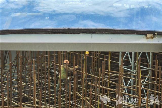 1月17日,工人们在巡司河活水公园内拆除脚手架,做最后的收尾工作。
