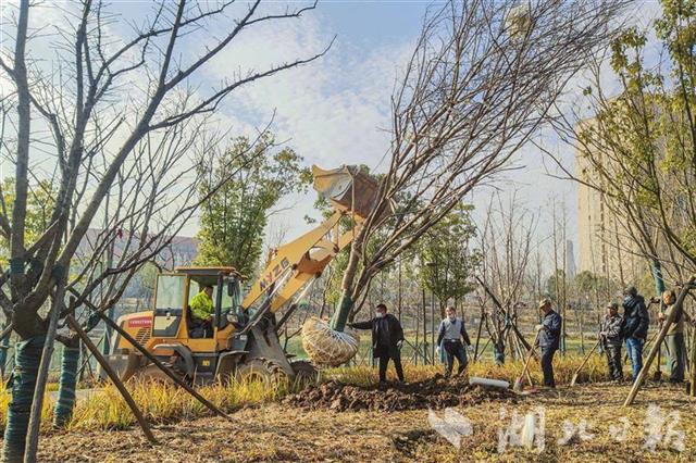 1月17日,园林工人正在巡司河活水公园内植树。