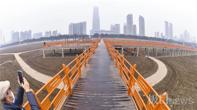 据悉,秋冬交替之际,汉口江滩连绵不断的芦荻花海,吸引无数市民和游客前来打卡拍照,周末更是游人络绎不绝。为方便市民江滩赏芦花,2018年修建了观芦栈道和观芦步道,观芦栈道高出芦荻花海,游客可以换个角度,轻松从高处俯瞰“荻海飞雪”;观芦步道则纵伸在观芦林中,方便市民亲近芦荻,变着角度拍美照。