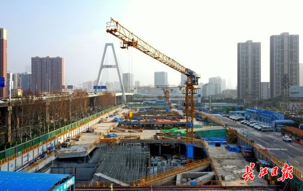 长江日报-长江网记者看到,整个项目呈狭长方形状,和一侧的金桥大道平行。该项目的基坑轮廓已经显现。3个十几米高的塔吊正有条不紊地将地面上成摞的钢筋送到基坑下,工人师傅们各司其职,抓紧作业中。