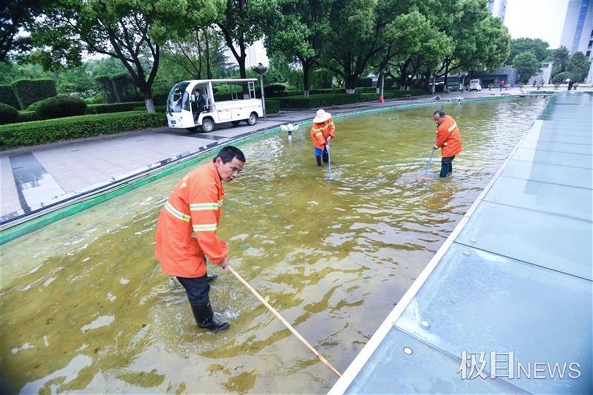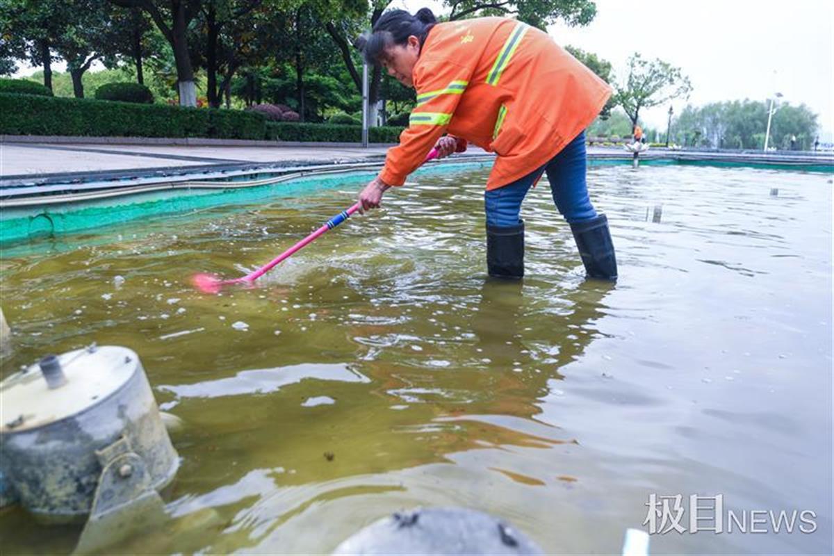 4月25日,武汉市汉口江滩公园管理处工作人员进入了繁忙阶段,他们加紧修剪树枝整理公园林木、清理亲水绿化台阶上的杂草、清洗玻璃步道的水池等。汉口江滩公园将以整洁美丽的形象迎接五·一国际劳动节,迎接全国各地游客到江滩参观游览。