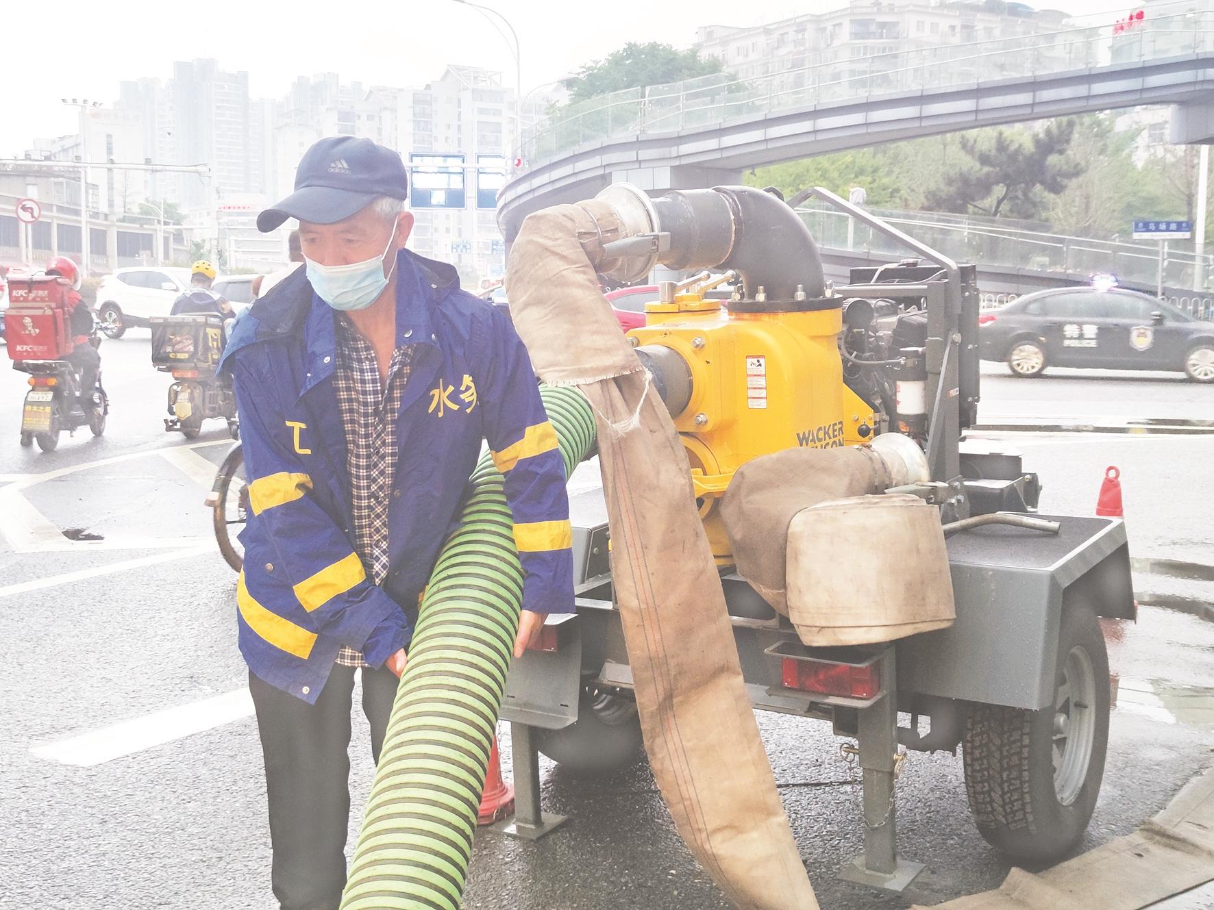 江汉区水务和湖泊局排水队在全区12个易渍点位,安排70余人携带设备提前值守,应急队员随时待令。