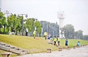 如今在武昌江滩五期,岸上行人畅享绿色空间,岸下江水流动不息,一派人水和谐。