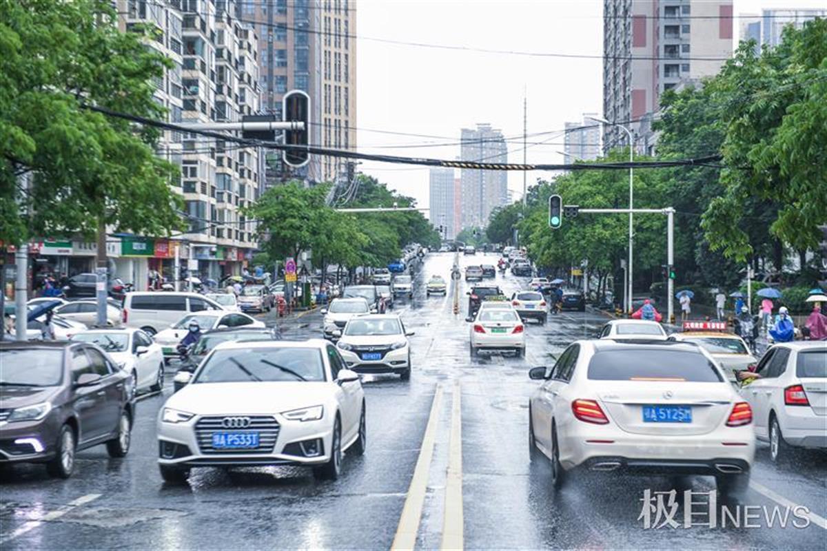 正降雨时,虎泉街和尚文路的交叉口这个“锅底”,交通秩序良好