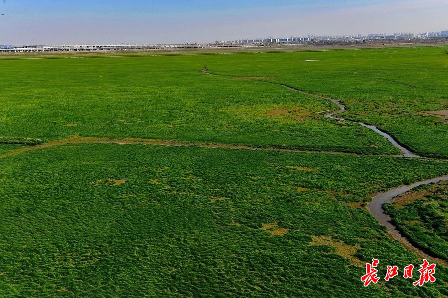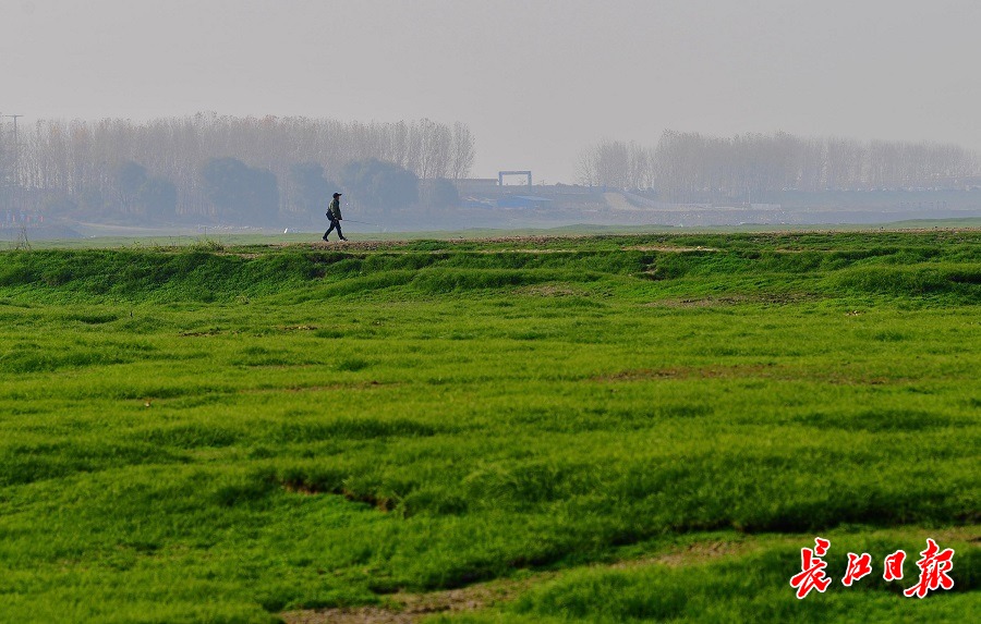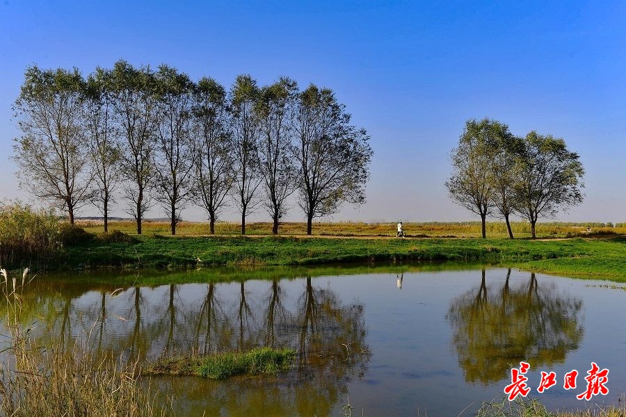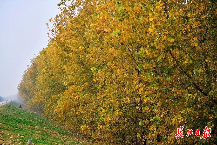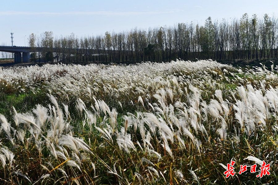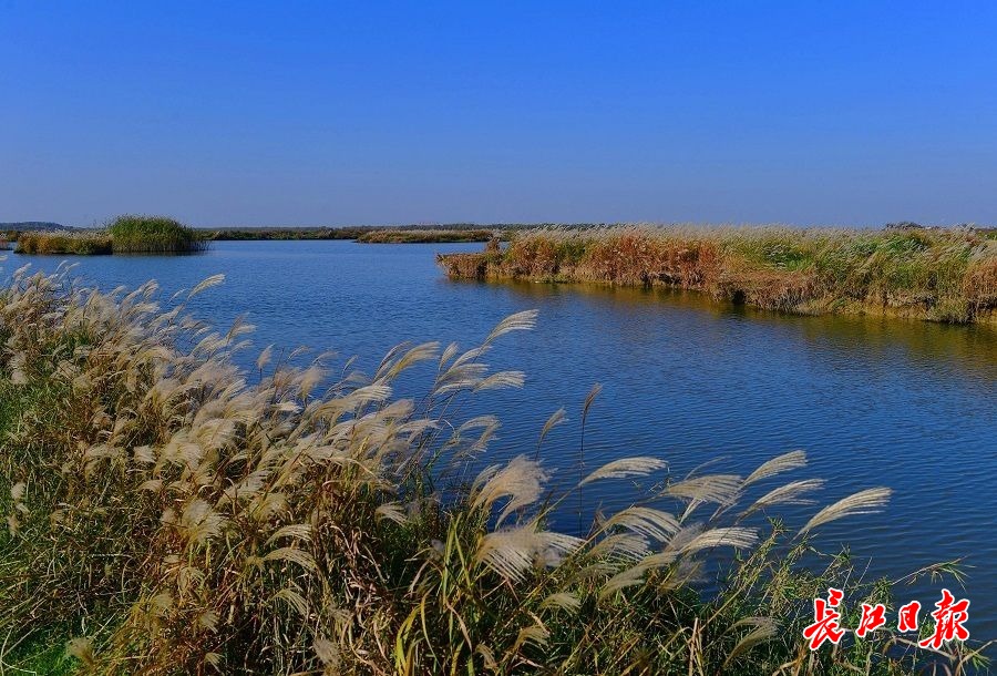 11月29日,暖洋洋的天气最适合郊游。虽然已入“小雪”节气,但是紧邻武汉中心城区的府澴河(俗称府河)却是一派花红草绿树叶黄、天蓝水碧荻花白的“四季”美景。众多市民驱车来到府河东西湖大堤,在10多公里长的河滩上支起帐篷、铺上地垫,欣赏这片醉人的“春光秋景”。