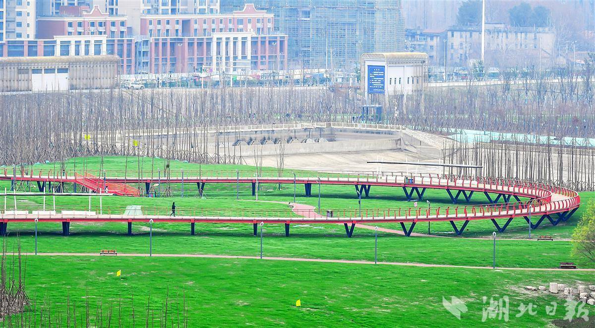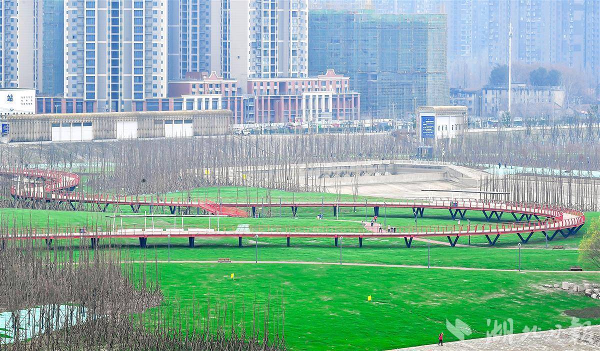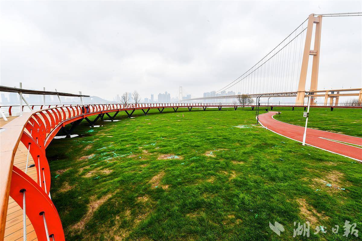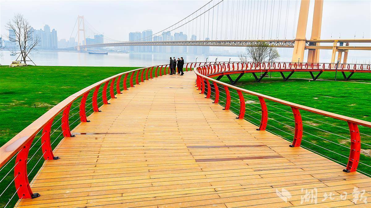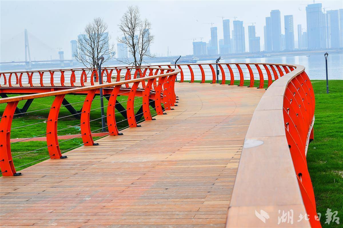 2月9日,随着绿色塑料布被揭开,洪山江滩露出真容。一条长约500米的S形栈道从草坪上空跨过,造就了该栈道成为武汉长江边最美的观江栈道,吸引不少市民游客来此打卡。