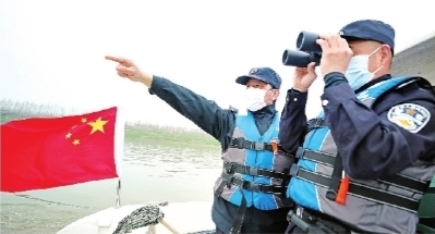 长江禁渔专业队民警和渔政执法人员联合开展江面禁渔巡查。