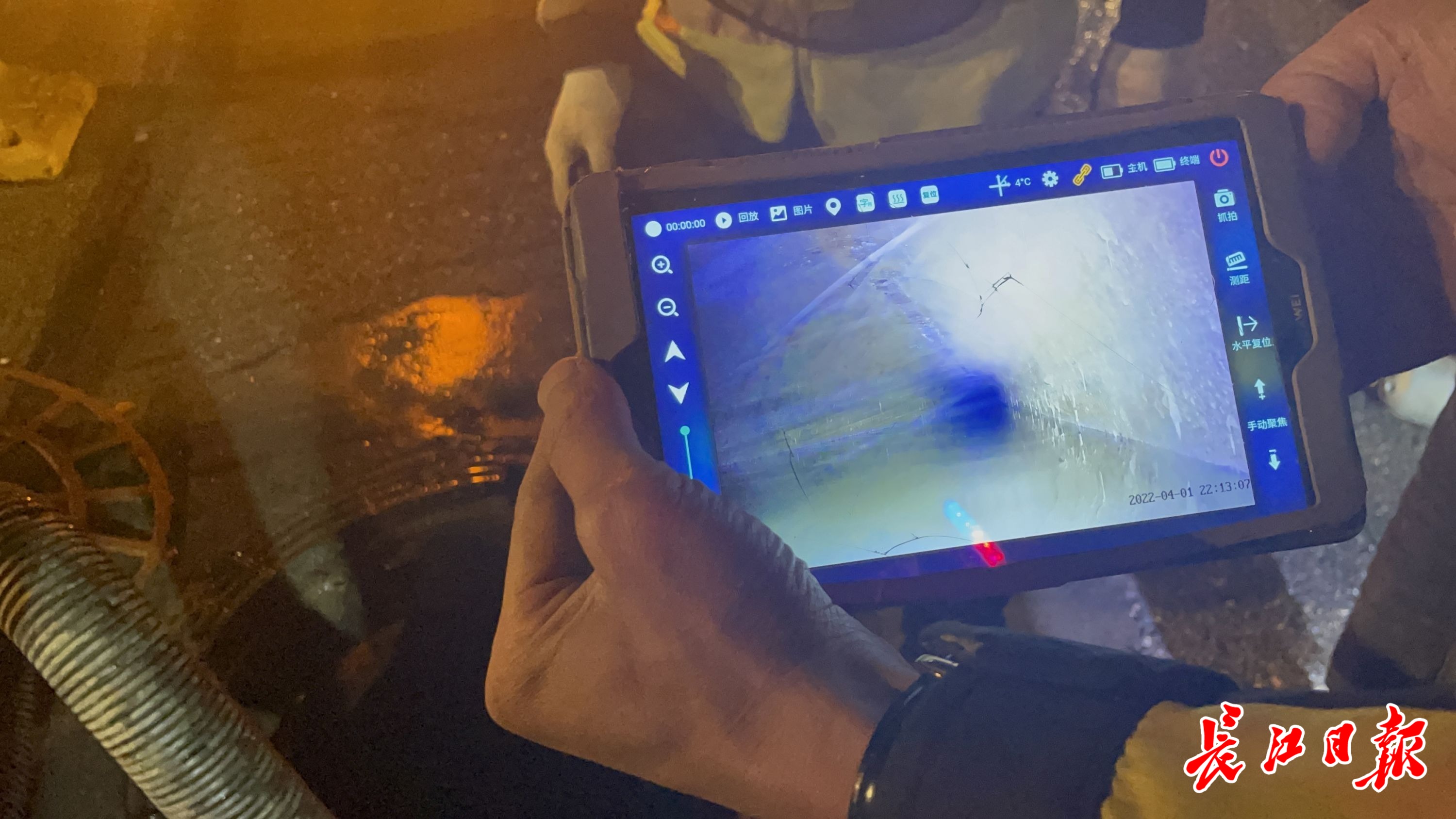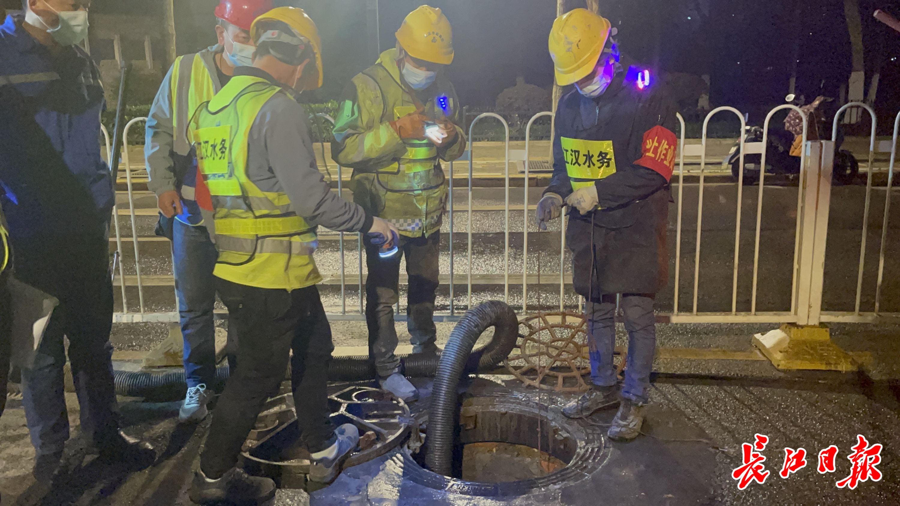 4月1日晚10点,江汉区排水队员江力争将多功能淤泥吸附车开至后襄河北路,今晚他要和另外6名同事进行雨水井清淤,为今年即将来临的汛期做准备,这里是当晚第一个清淤点位。