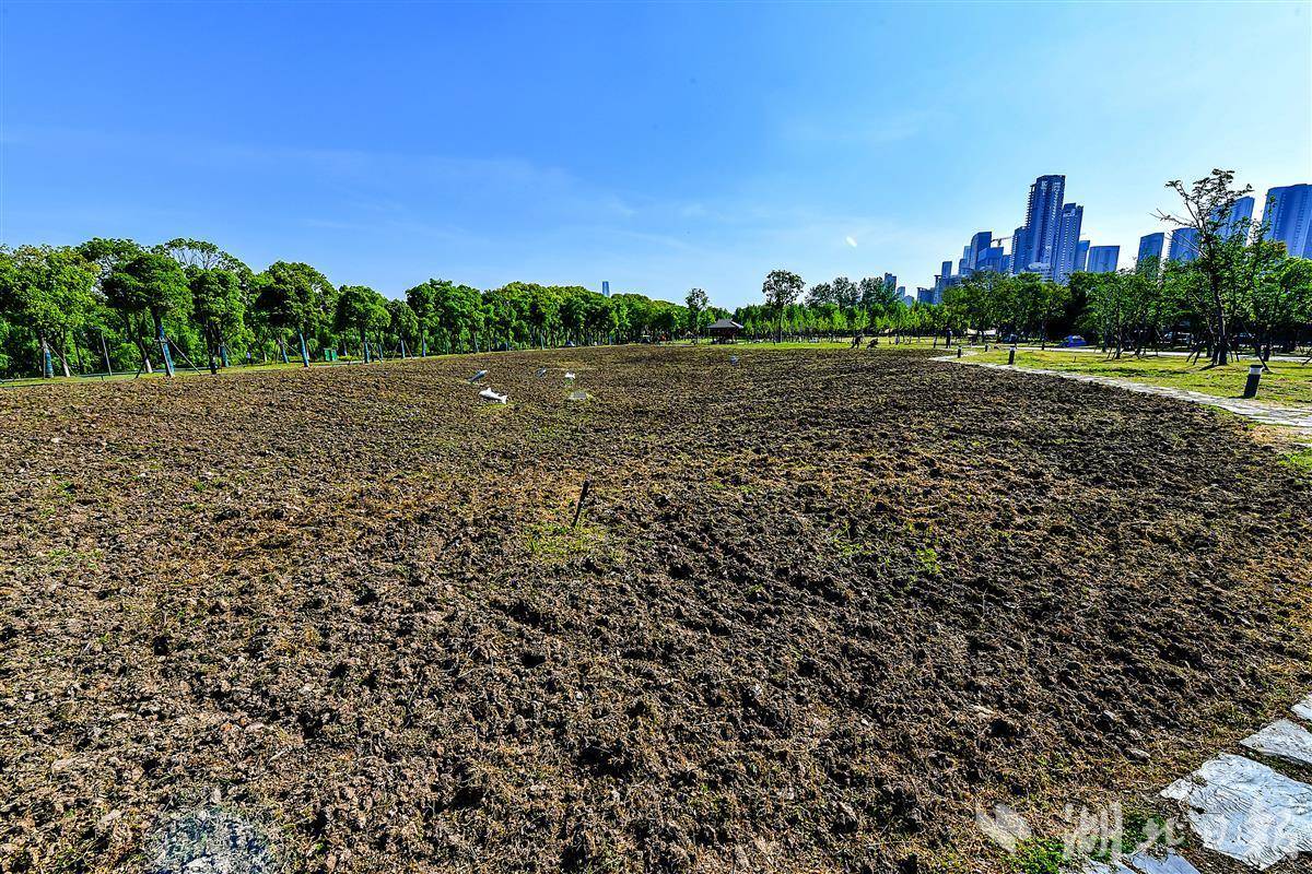 据工人介绍,江滩四期去年建成开放,这块地没有开挖过,一直长的是杂草。近日是首次开挖松土,准备种草。