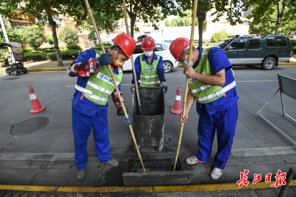汉阳区水务和湖泊局排水疏涝队副队长杨明峰介绍,这样的例行清理工作主要针对老城区道路、老旧小区内的排水井,他们每年至少要为各小区保障完成2-3次的排水井清理工作。疏涝小组每天在负责片区内轮番“扫街”,一天下来要清理近200个井口。“地下管网保持畅通,居民们就可以安心度夏。”他说。