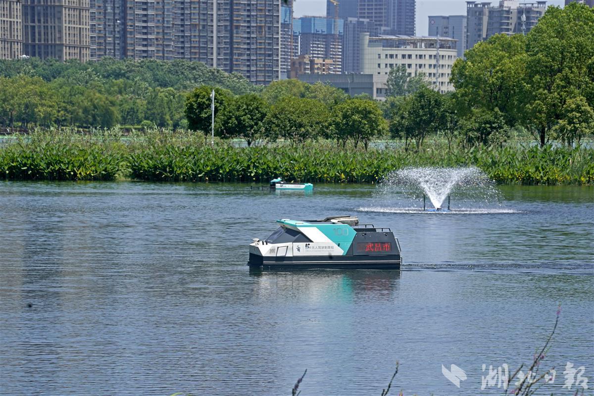 据介绍,目前无人清漂船和无人割草船运行正常率达99.4%,效率高且安全,不受高温、风雨等天气影响,已广泛应用于武汉紫阳湖公园、常青公园等多个公园的水处理项目中。
