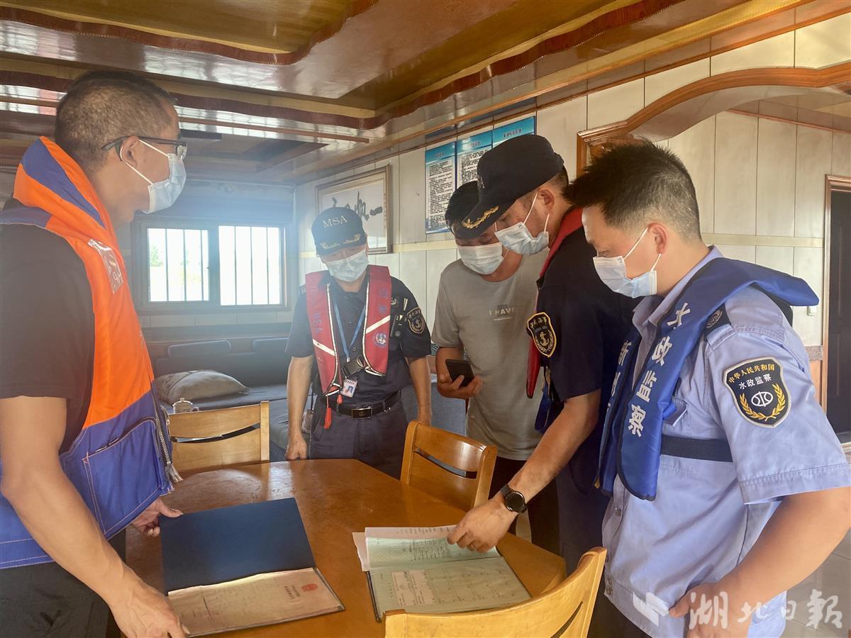 “各单位请注意,整队出发!”当天下午,随着一声号令,7艘执法艇在黄陂水政码头集结出发,对武汉长江下游水域的11艘船只进行随机巡查。经两个小时的依法排查,未发现涉砂违法行为。
