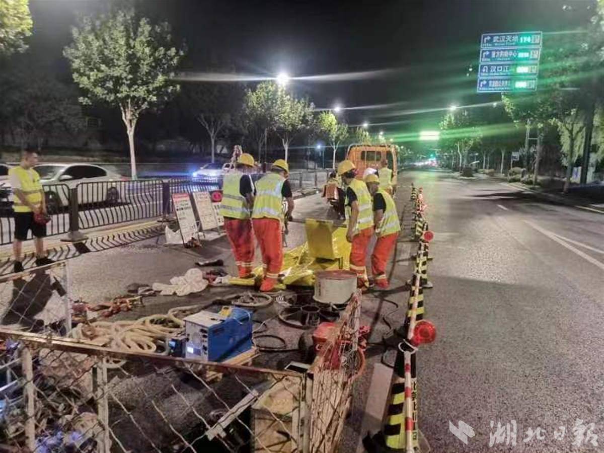 施工过程中,运用的新技术不仅于此。8月18日,蔡锷路和中山大道交汇路口,湖北日报全媒记者看到,施工人员正将直径为600毫米的钢筋混凝土排水管,更换为直径为1000毫米的玻璃纤维排水管。在这段长约60米的路段,施工人员在起点处和终点处,分别打下始发井和接收井。通过始发井,施工人员将特制钻探设备送入地下约5米深处,水平向接收井掘进。通过这种顶管施工技术,8米宽的路面仅被占去不到一半,除了两口井,整个路段无需开挖,避免马路“开肠破肚”,给市民出行造成不便。