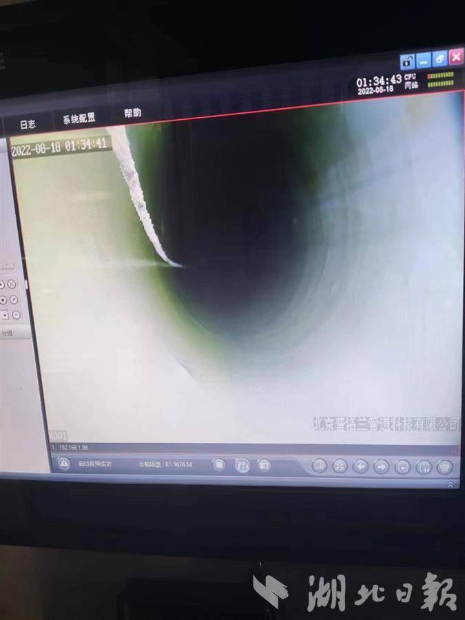 在8月17日的管道修复工程中,使用的是紫外光固化技术。现场施工人员说,前期,他们通过投放管道机器人,对管道的材质、淤积程度、错口、裂纹和破损状况进行诊断。“这就像给管道做‘胃镜’。”